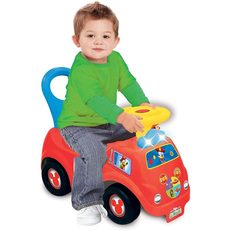 KIDDIELAND. Carro de Bomberos Montable Mickey + Luces + Sonidos Kiddieland 100%ORIGINAL La luz de kiddieland N 'Mickey Fire Engine de actividad es un vehículo de juguete de sonido que el tamaño perfecto. Su hijo le encantará jugar como un bombero en de Mickey Fire Engine. El coche de bomberos Cobra vida cuando su niño juega con él. Pulse los botones en el salpicadero a la audición de un motor revving, un cuerno, o un ruido de sirena realista. Gire el dial para escuchar otros efectos de sonido divertidos. El coche tiene ruedas grande de plástico que mover alrededor de la casa, o Driveway con su niño. Decorada con divertidas pegatinas de vinilo de Fire Fighter Gear, Mickey, Pluto, Donald Duck, Goofy y Minnie. Este juguete es a la vez divertido y seguro para sus hijos, fabricado con un material de plástico resistente, construido para montar Horas de diversión. Dimensiones del producto 50.8 x 26.04 x 33.35 cm Pilas 2 AA necesaria(s), incluida(s)