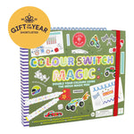 Duplica la diversión con Colour Switch Magic! Este set contiene 6 lápices de colores y 1 rotulador blanco mágico que cambia de color, lo que te permite crear patrones y divertirte.