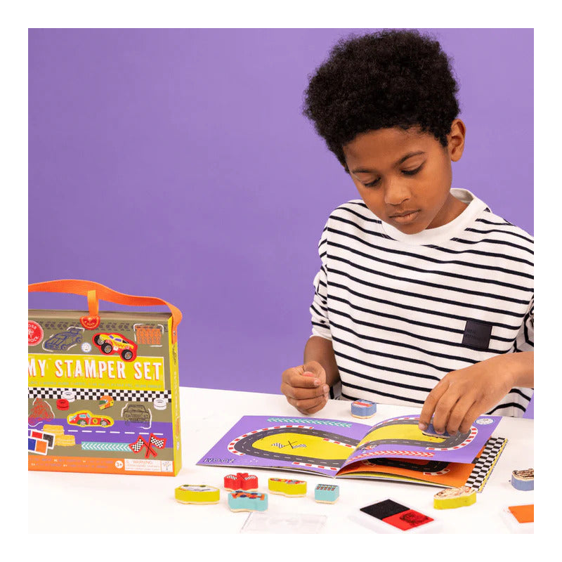 - 8 sellos con forma de madera: Incluye una variedad de sellos con temática de carros para una creatividad sin límites.