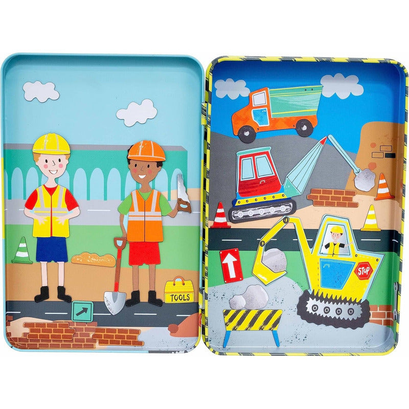 Incluye 3 hojas de imanes para crear escenas increíbles con más de 50 piezas magnéticas, como excavadoras, camiones, grúas y mucho más.