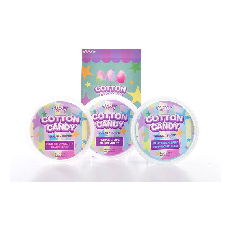 Este paquete de tres algodón de azúcar se fabrica con orgullo en EE. UU. y cuenta con tres sabores oficiales de Dippin' Dots. Podrás preparar algodón de azúcar de color rosa con sabor a fresa, azul con sabor a frambuesa, y también de color morado sabor a uva. ¡Qué versión tan divertida de este clásico dulce, perfecto para crear el ambiente perfecto en una fiesta o una pijamada!