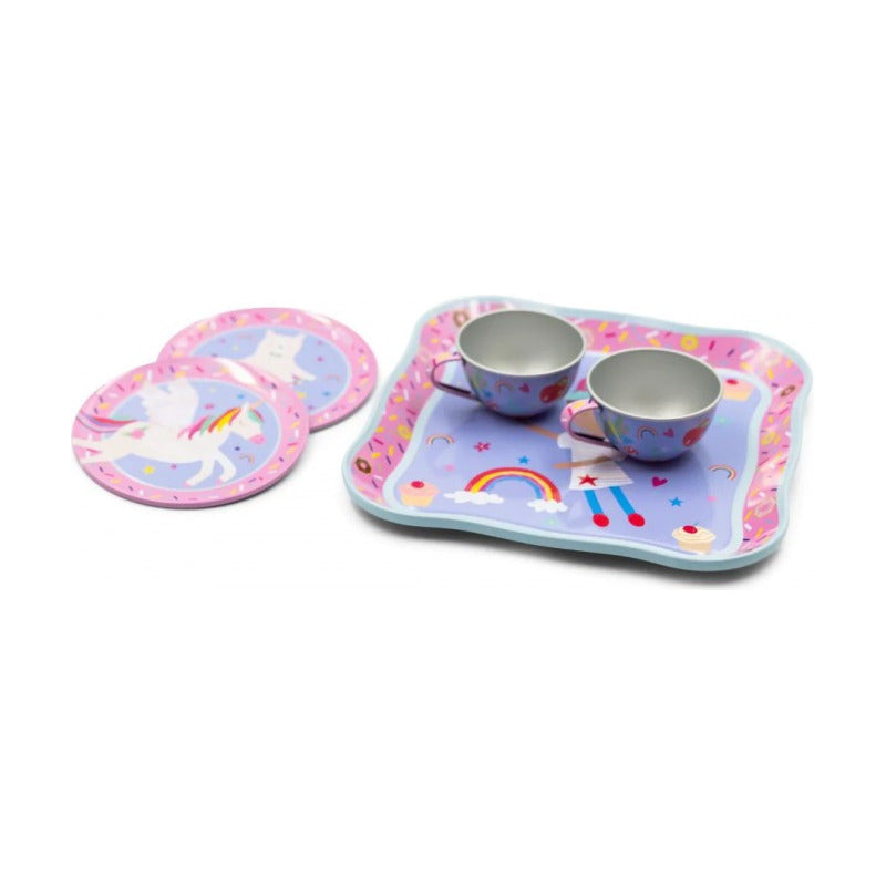 Nuestro juego de té de 7 piezas Rainbow Fairy es la excusa perfecta para una fiesta de té por la tarde. La caja de colores brillantes contiene ilustraciones de hadas, unicornios y osos de hula hoop.