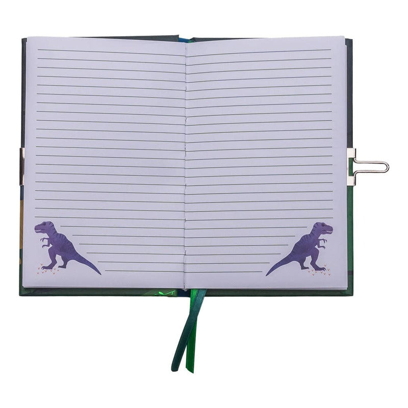 Incluye un candado y una llave Y una divertida hoja de pegatinas con dinosaurios, gente de las cavernas y mucho más.