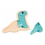 Este juego de rompecabezas progresivos de madera de la colección Dinosaurios de la marca francesa JANOD consta de 4 rompecabezas de diferentes niveles de dificultad.