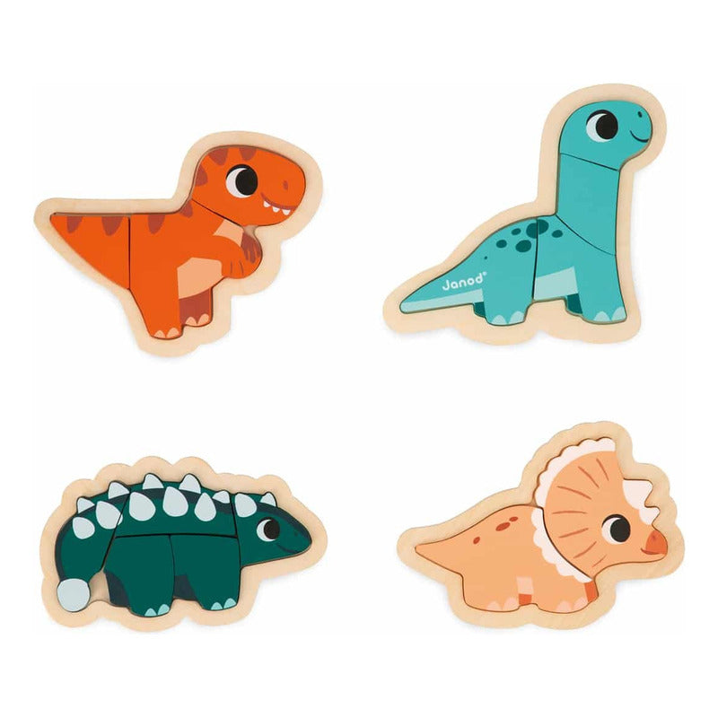 Janod - Rompecabezas De Madera Progresivo: 4-En-1 Dinosaurios (18 - 36 Meses)