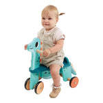 ¡Abran paso! ¡Llega el correpasillos diplodocus! ¡Con qué orgullo se paseará el peque a lomos de este dinosaurio por toda la casa y fuera también! ¡El Portosaurus no puede ser más adorable con sus colores azules con crestas anaranjadas y sus grandes ojos redondos! ¡Su gran sonrisa da ganas de salir a dar un largo paseo!