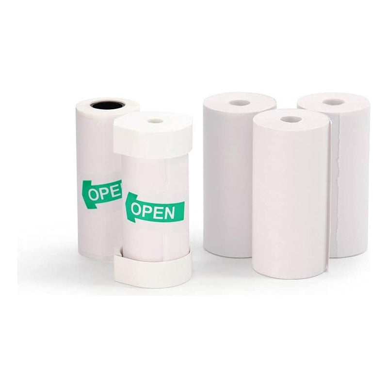 - Cada juego incluye 5 rollos de papel de impresión: 2 rollos adhesivos para una fácil aplicación con el sistema de despegar y pegar en cualquier superficie; 3 rollos de papel regular.