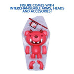 Cambia brazos, cabezas y accesorios para crear tu propio Deddy Bear único. Ya sea para jugar o para exhibir, ¡estas figuras dan vida a la diversión aterradora y a las posibilidades creativas!