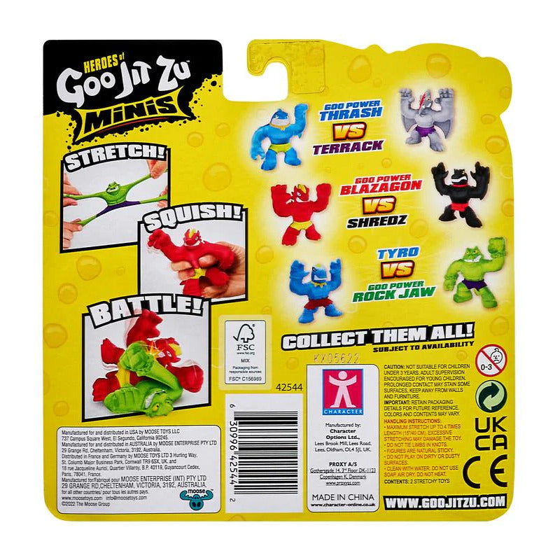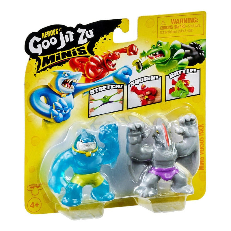 ¡ Estíralos, apriétalos y lucha directamente del paquete! Siguen siendo súper elásticos, pegajosos, blanditos y ¡ahora incluso pegajosos! ¡Cada paquete versus contiene 2 Mini Héroes de Goo Jit Zu para que puedan luchar sin parar!