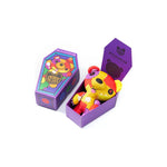El peluche viene en un escalofriante ataúd, pero ten por seguro que es tan inofensivo y adorable como cautivador.