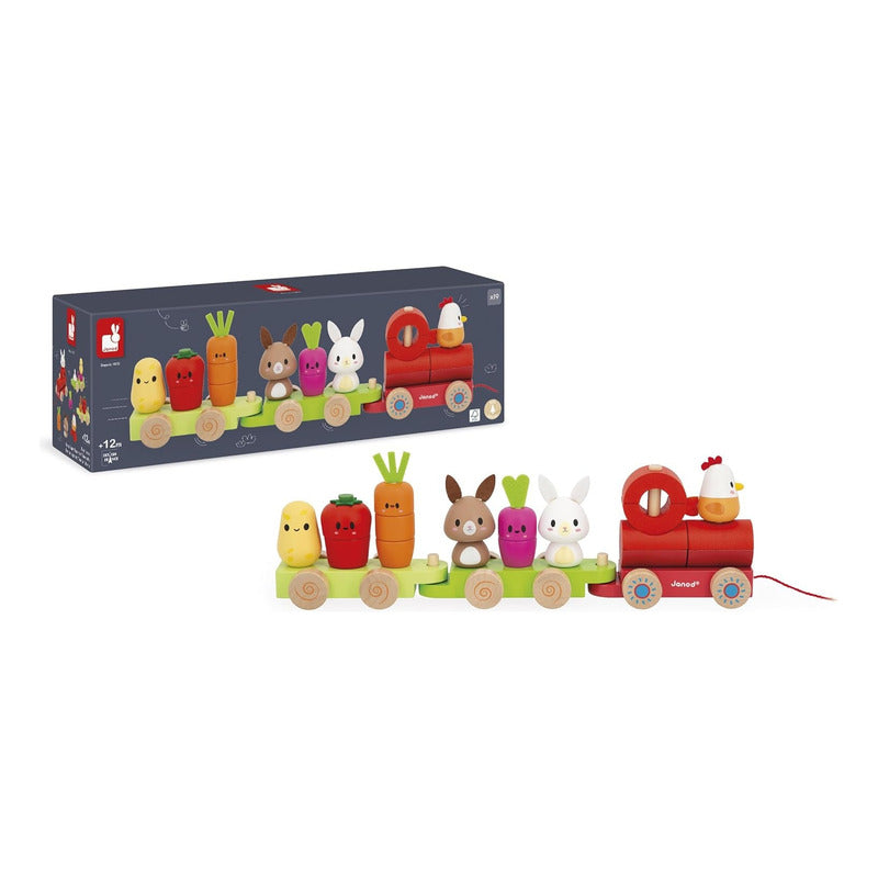 Janod - Farm: Tren Apilable De Madera Animales de la Granja