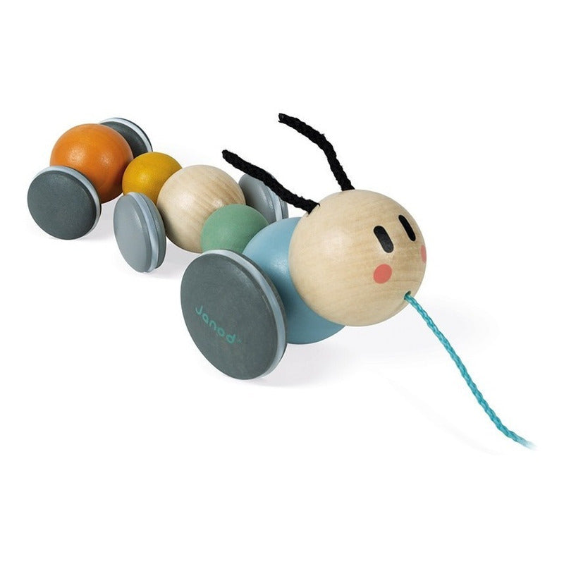 Al bebé le encantará llevar esta pequeña oruga de madera a todas partes. Con sus antenas de cable, ¡se ve muy divertido!