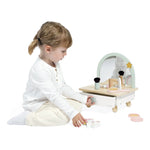 Incluye 7 accesorios para que puedan imitar a los adultos preparándose frente al espejo o abrazar a sus peluches y muñecas favoritas mientras juegan a la peluquería.