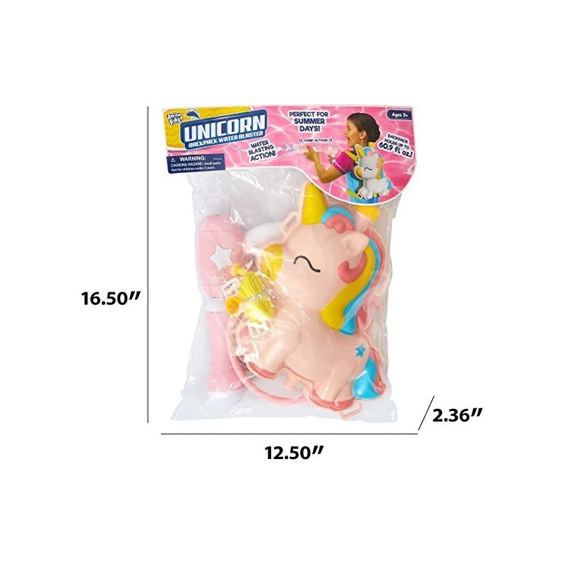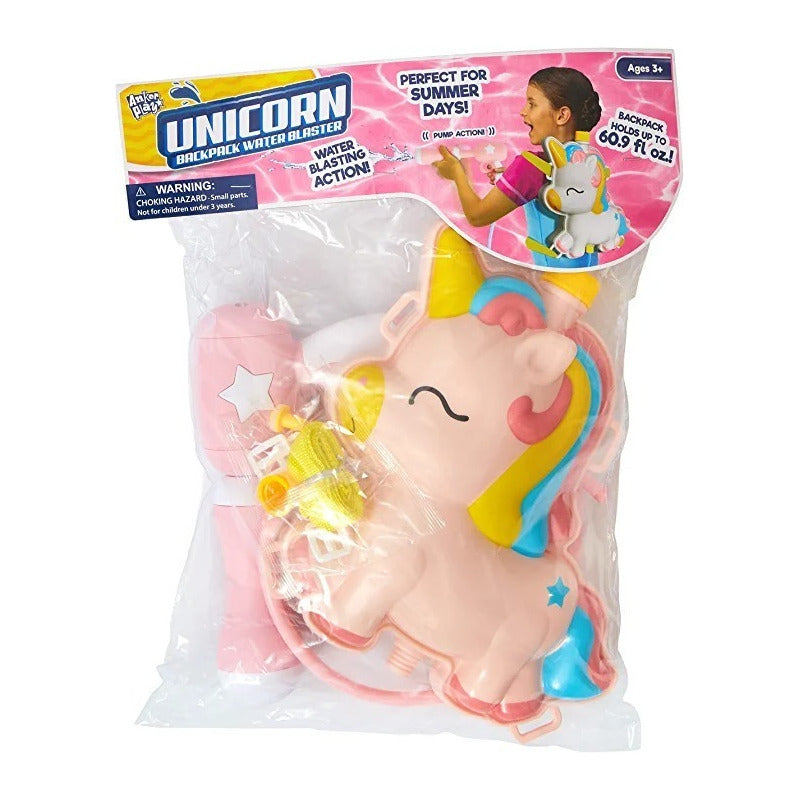 Mochila Lanzador de Agua Unicornio Anker Play ANKER PLAY. 100%ORIGINAL La mochila de Unicornio Water Blaster (Lanzador de Agua) es el complemento perfecto para las aventuras al aire libre de tu hija. Cada mochila tiene capacidad para 60 onzas líquidas de agua (1,77 litros) y tiene una pistola de agua de acción de bomba que libera un spray de agua. Edad Recomendada 3+. ------------------------------------------------------------ ------------------------------------------------------------