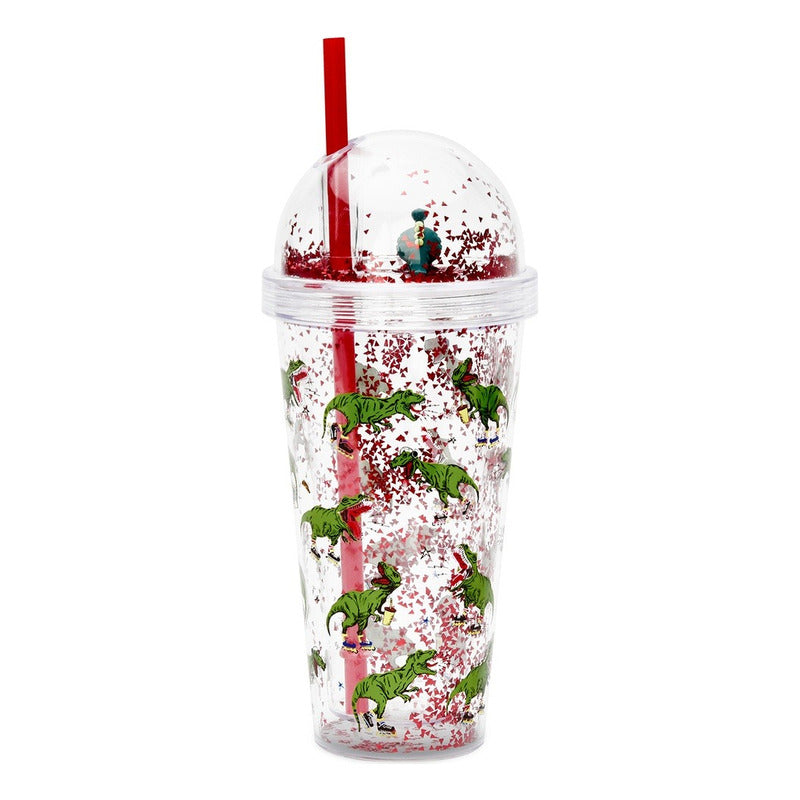 ¡Bebidas increíbles para llevar! Dale un toque de diversión prehistórica a cada bebida con nuestro Vaso Dino Glitter. Hecho de plástico PS duradero y libre de BPA, este divertido vaso presenta un diseño de doble pared transparente lleno de confeti rojo brillante que gira y brilla con cada movimiento.