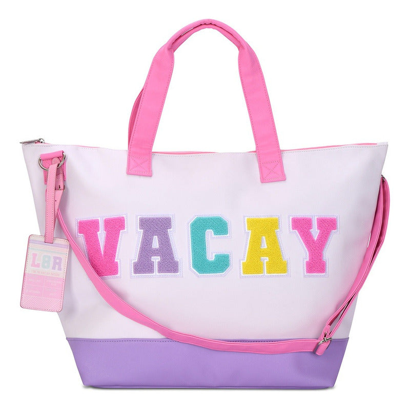 Esta bolsa grande está hecha de cuero sintético granulado resistente y presenta divertidos apliques de chenilla y detalles bordados, con un forro interior completo para que sea fácil de limpiar. Y tiene espacio suficiente para todo lo esencial de un fin de semana: ¡mide 59,7 cm de largo x 40,65 cm de alto x 23 cm de profundidad! Incluye una etiqueta de equipaje para hacerla extra especial. con El cierre de cremallera mantiene todo perfectamente guardado y el bolsillo interior con cremallera es perfecto para guardar objetos pequeños. Las resistentes correas dobles de piel sintética te permiten llevarla fácilmente. ¡Descubre la bolsa de cosméticos a juego para crear un look coordinado!