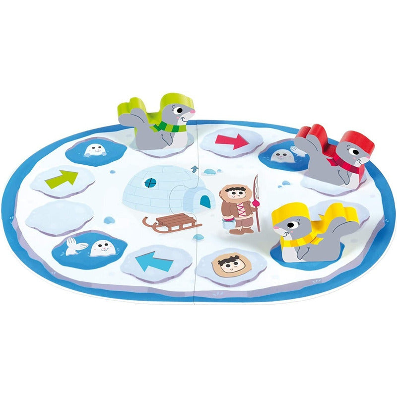Con 5 piezas de madera hechas a mano en madera de calidad para durabilidad, 15 focas y peces, piezas de tablero de caza y un dado de madera.