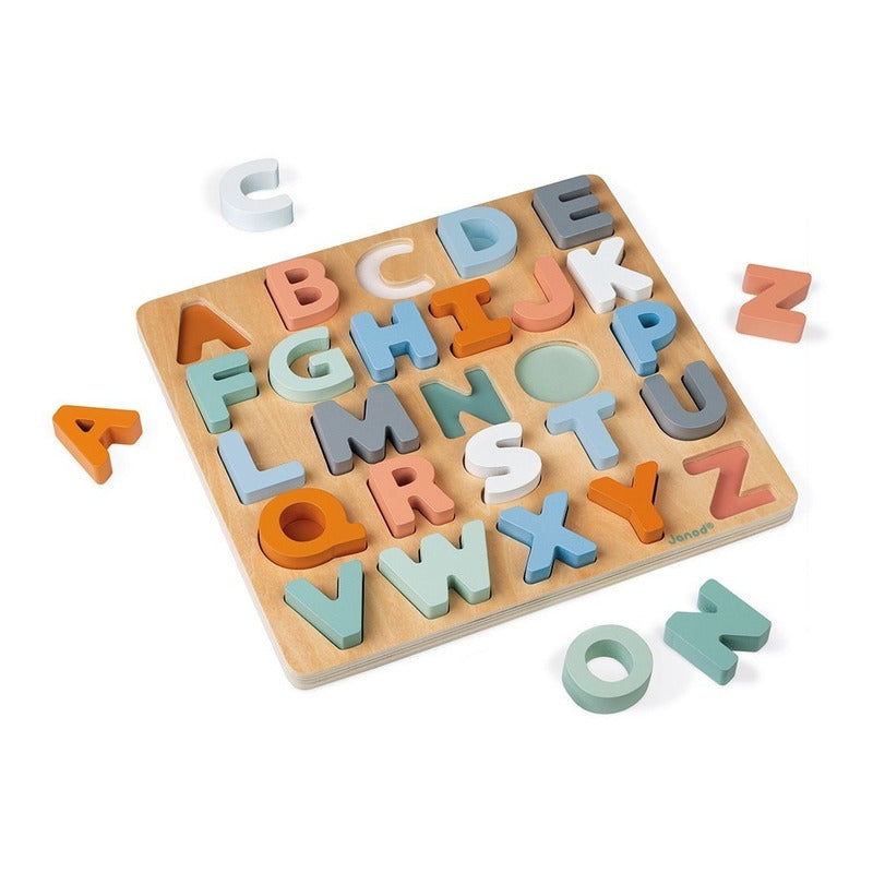 Janod - Sweet Cocoon: Pizarra + Rompecabezas de Madera ABC Abecedario