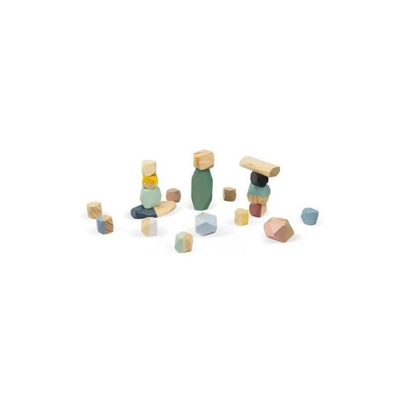 Este juego consta de 20 piedras de madera con diferentes formas y cortes. También están disponibles en varios colores y se combinan perfectamente, gracias a su tono pastel extremadamente suave.