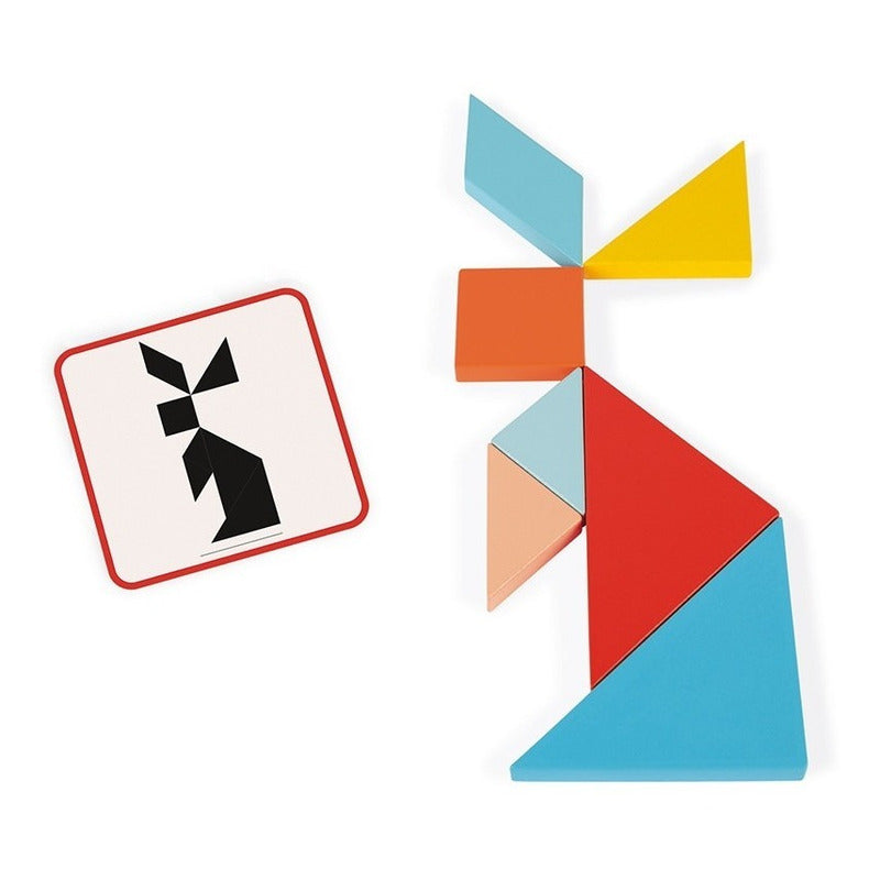 Janod - Essentials: Juego Didáctico De Madera Tangram + Tarjetas