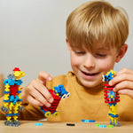¡Plus-Plus es una forma con infinitas posibilidades! ¡Pon a funcionar tu creatividad construyendo 5 robots únicos, luego mezcla y combina brazos, piernas y cuerpos o crea un robot que sea completamente tuyo!
