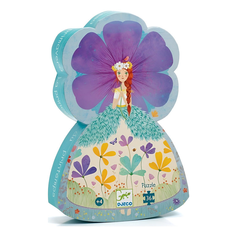 Reúne las piezas de la belleza de la primavera con este dulce rompecabezas de silueta de la Princesa de la Primavera de Djeco y aventúrate a un mundo donde las flores florecen en el jardín y casi puedes escuchar el canto de los pájaros.