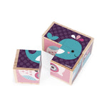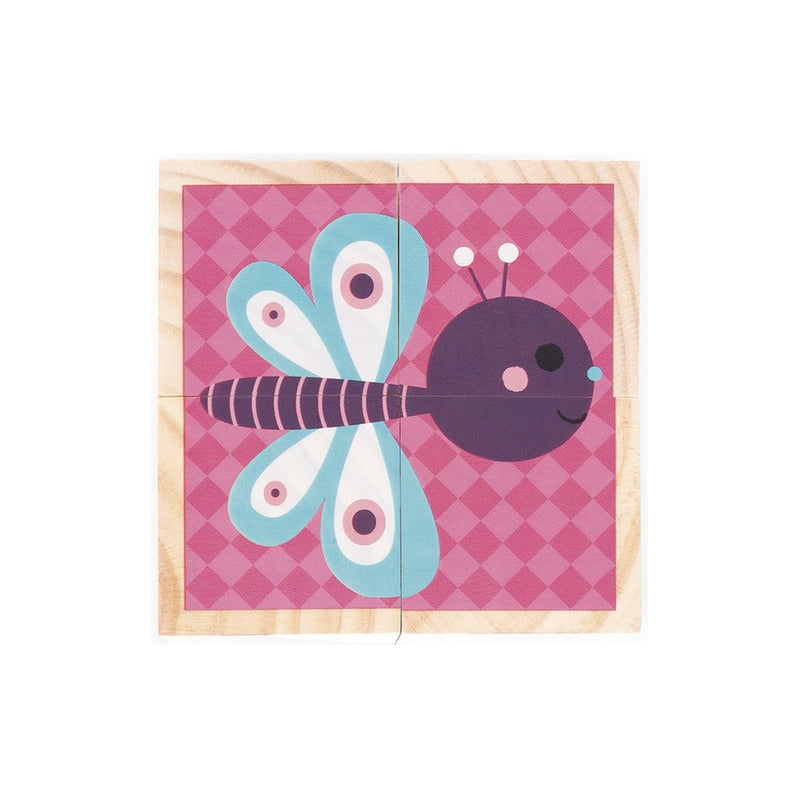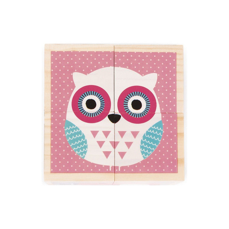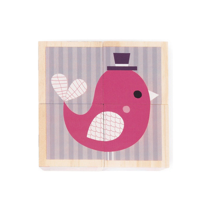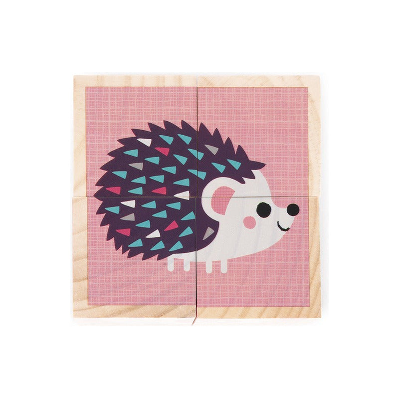 Juego de 4 cubos de madera maciza con adorables crías de animalitos.
