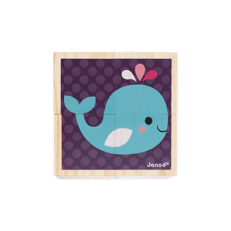 Janod - My First Blocks: Cubos De Madera Bebé Animales (12 - 36 Meses)