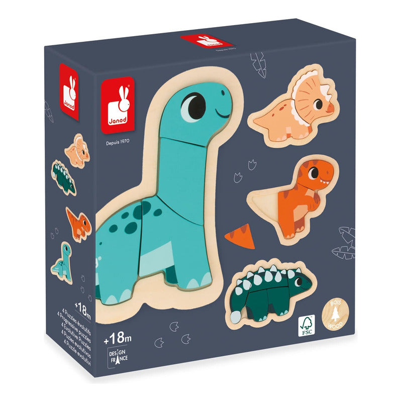 Janod - Rompecabezas De Madera Progresivo: 4-En-1 Dinosaurios (18 - 36 Meses)