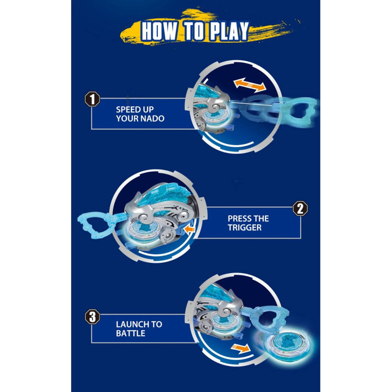 INFINITY NADO. ALPHA GROUP 100%ORIGINAL Infinity Nado ¡la hoja más potente, adecuada para la batalla más genial! Nuevo lanzador Epic Launcher Starter en una temible forma de dragón y en un aspecto de tigre intimidante. Crea tu propia hoja única, los elementos son intercambiables con otros Nados de la serie Epic Launcher. Inserta el Nado en un orificio especial hasta que escuche un clic, gire la parte superior y presione el botón de inicio. ¡Golpea a tu oponente con una velocidad de lucha épica! Recomendado para niños mayores de 5 años ------------------------------------------------------------ ------------------------------------------------------------