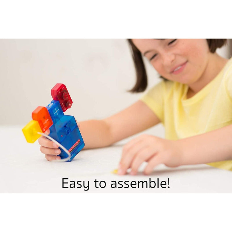 Construye más de 30 alarmas y detectores personalizados utilizando el kit técnico de alarma logiblocs Bloques de construcción electrónicos 'Plug and Play', cada uno codificado por colores con funciones únicas para crear circuitos personalizados para construir una variedad de sistemas de control y dispositivos.