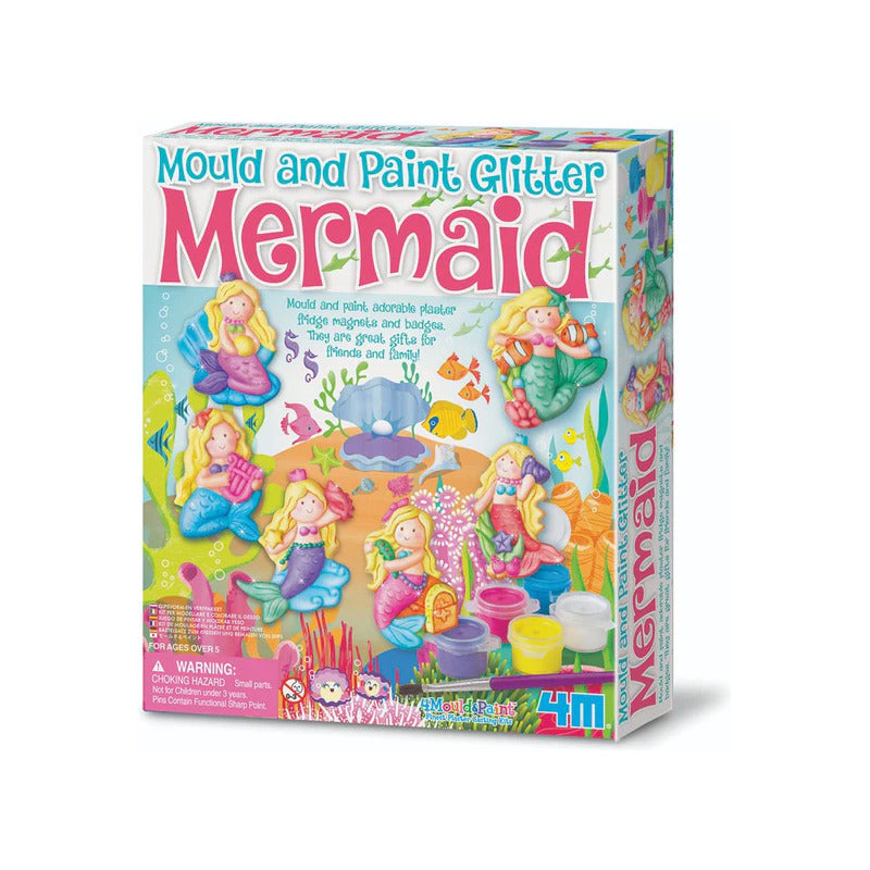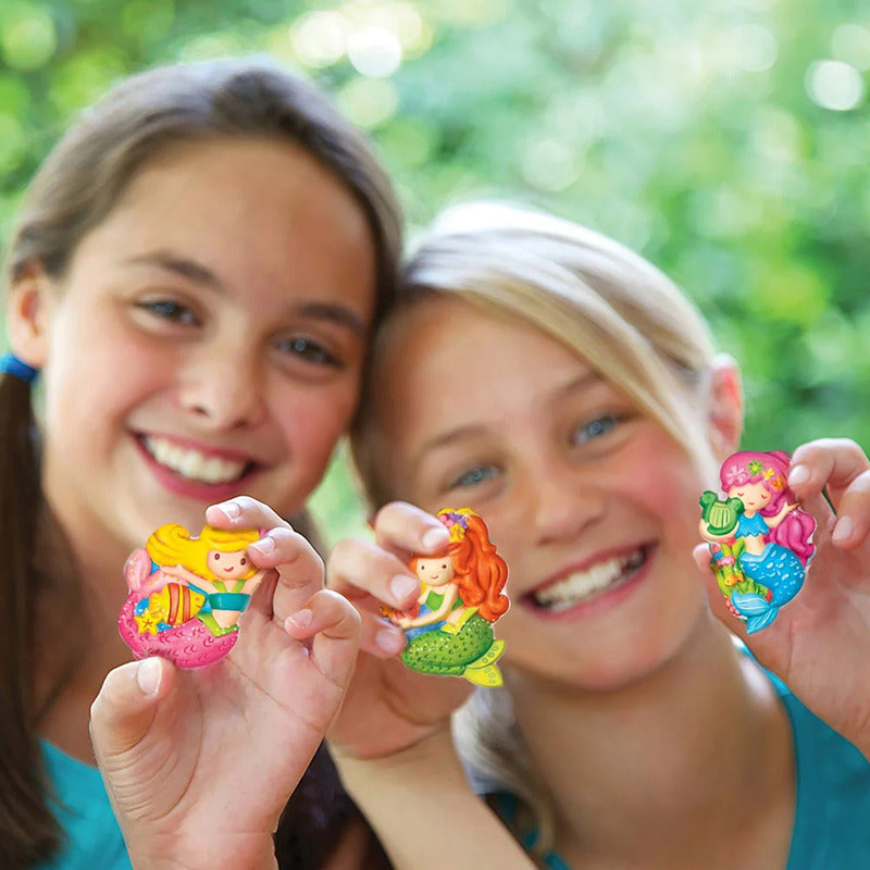 Crea adorables imanes de nevera de yeso e insignias para guardar o compartir con este kit de Sirena de Purpurina de Moldes y Pintura.