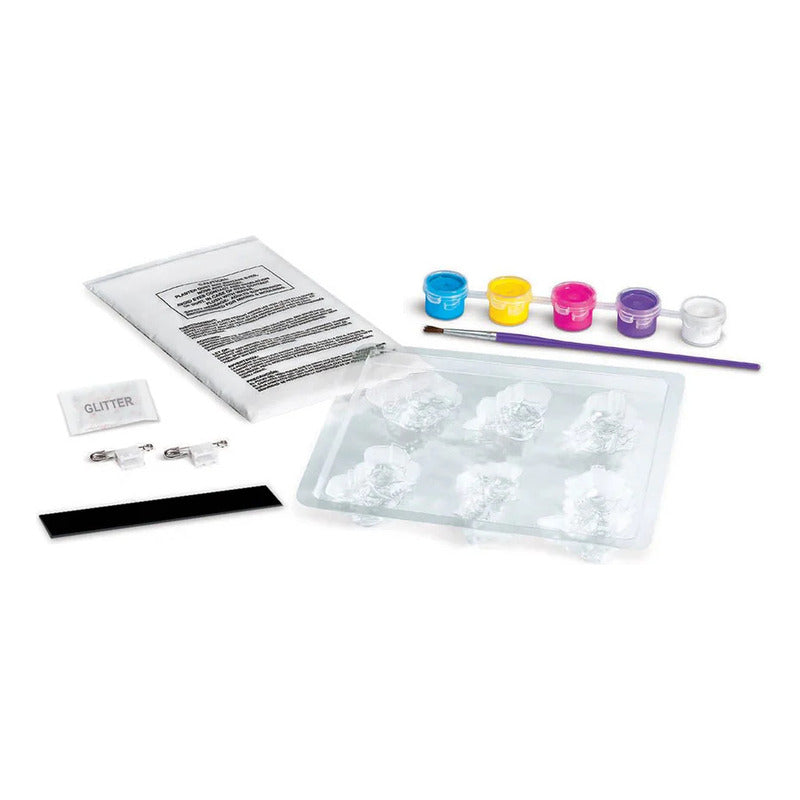 El paquete incluye: 1x polvo de yeso, imanes, 5x tira de pintura de color, 1x pincel, purpurina, instrucciones Edades recomendadas: 5 años +.