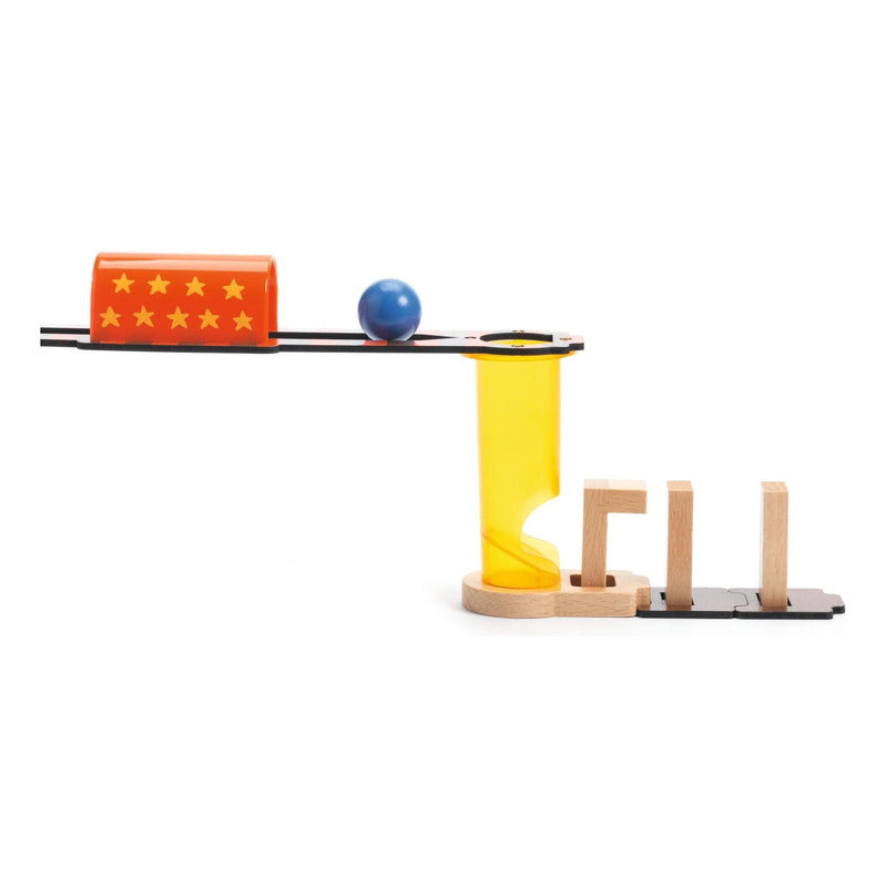 Magic es un juego de madera de reacción en cadena, puzle y construcción para niños a partir de 5 años.