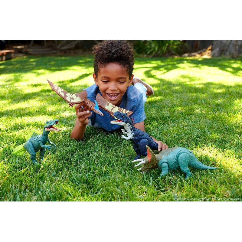 Esta figura de acción tiene un gran sonido rugido y un estiramiento del cuello, acción de ataque CHOMPING para un juego de batalla realista. Es fácil para los niños activar las características: simplemente presionan hacia abajo en la zona de la cadera