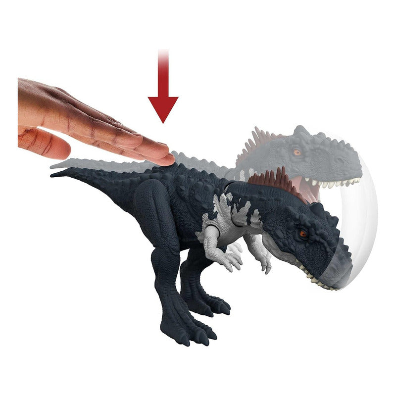 Jurassic World Dominion trae nuevas emociones y aventuras a los amantes de los dinosaurios. Con aproximadamente 33 cm de largo, esta figura de Rajasaurus de Roar Strikers inspirada en la película ampliará la definición de diversión de dinosaurios