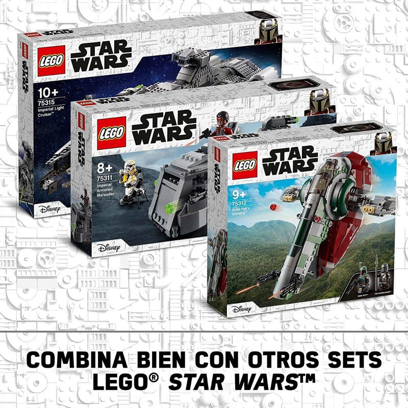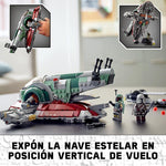 Lego Star Wars 75312 La nave estelar de Boba Fett 593 Pzs LEGO. 100% ORIGINAL Cuenta con una maqueta de construcción con ladrillos LEGO de la nave espacial de Boba Fett, con un mango para volar fácilmente, alas giratorias y 2 lanzamisiles, también cuenta con una cabina que se abre para minifiguras LEGO, 2 cañones bláster giratorios (que no disparan) y un compartimento para un bloque de carbonita. -Incluye: 2 minifiguras LEGO Boba Fett con un bláster y el Mandaloriano con su rifle bláster y lanza de beskarun, un vehículo transportador para mover la nave en el suelo en escenarios de juego a solas o en grupo además de un bloque de carbonita. -Edad recomendada: + de 9 años.