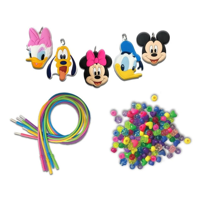 Mezcla y combina para crear tus propias joyas de Minnie con cuentas de colores, collares de silicona y divertidos dijes de personajes