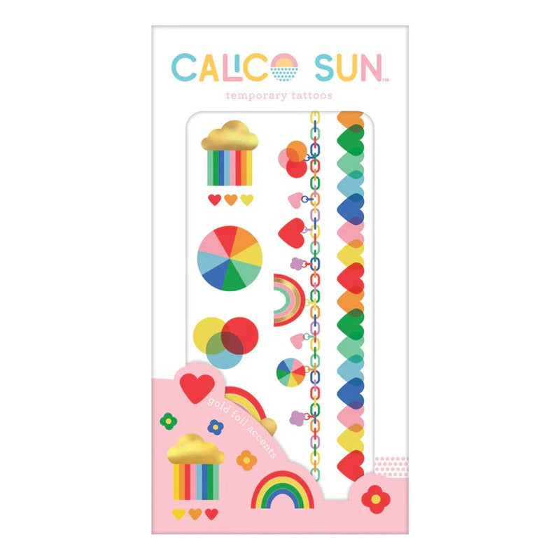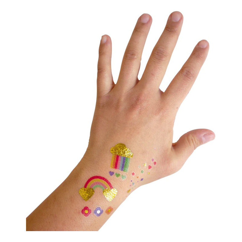 OOLY. Calico Sun Tattoos Temporales Violeta (6pk) OOLY 100% ORIGINAL Dale un toque especial a tu armario con los tatuajes temporales violeta. Cada paquete contiene dos hojas de tatuajes temporales con arcoíris, corazones y una variedad de formas, con un tratamiento de lámina de oro. Perfectos para complementar tu atuendo o agregar a una bolsa de regalos para una fiesta de cumpleaños, estos tatuajes temporales hacen una declaración audaz con sus colores vibrantes y símbolos de positividad. Un regalo de fiesta ideal, son adecuados para mayores de 3 años. ¡Deja que el mundo conozca tu actitud positiva y haz sonreír a todos! ------------------------------------------------------------ ------------------------------------------------------------