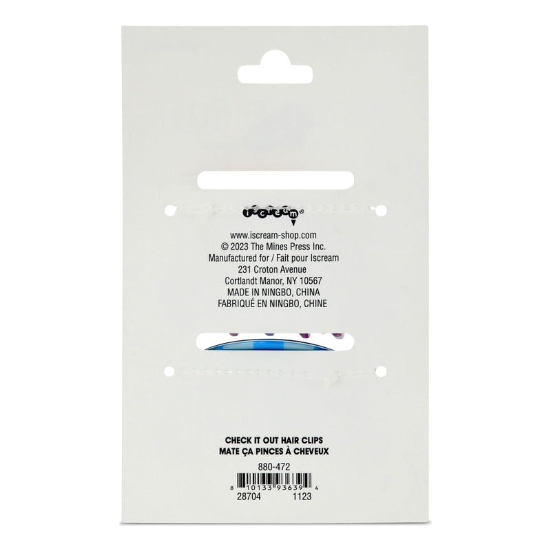 Cada pinza mide aproximadamente 6,35 cm de alto x 7,62 cm de ancho y el juego de dos viene en una colorida tarjeta de regalo, perfecta para regalar. La combinación perfecta de diversión colorida, diseño irresistible y calidad excepcional: ¡justo lo que esperas de iscream!
