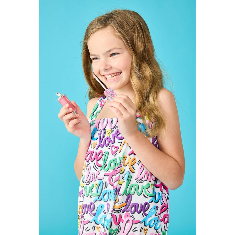 ¡A todas las chicas les encanta añadir un toque de brillo a su look antes de salir a conocer el mundo! ¡Añádele un aroma divertido y estará lista para todo! Este precioso brillo labial tiene una tapa de rosca con incrustaciones de chispas y un aplicador clásico de varita. El brillo con aroma a vainilla es rosa pálido con pequeños destellos holográficos para un brillo extra brillante. Viene en un hermoso empaque de cartón, ¡perfecto para regalar! El tubo contiene 0.15 oz de brillo. La combinación perfecta de diversión colorida, diseño irresistible y calidad suprema: ¡justo lo que esperas de iscream!