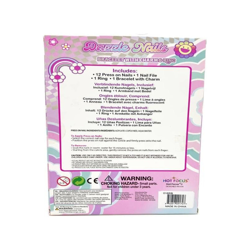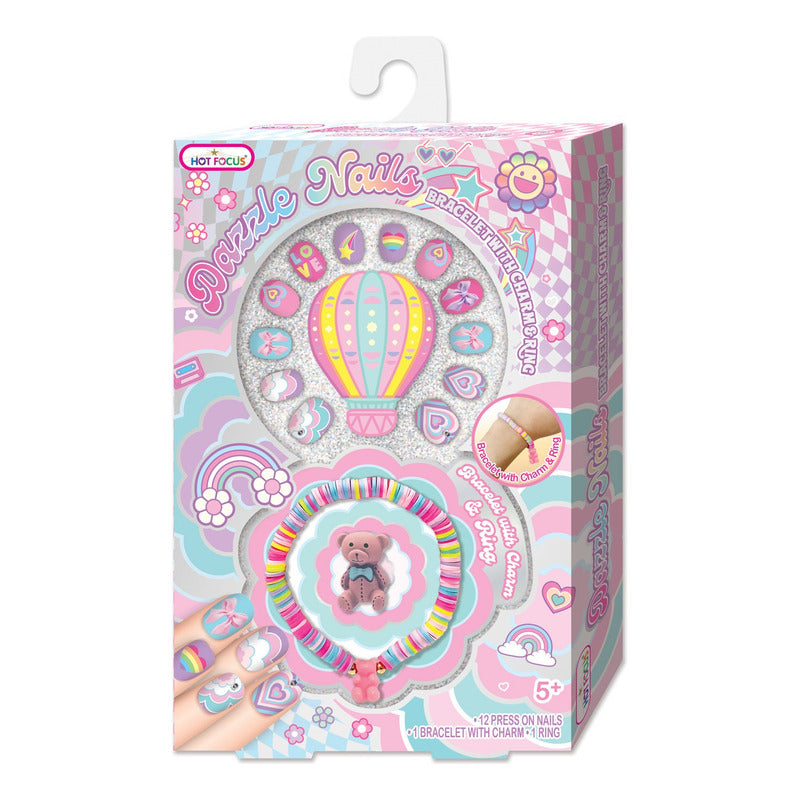Hot Focus - Dazzle Nails: Set Uñas Arcoíris + Pulsera + Anillo