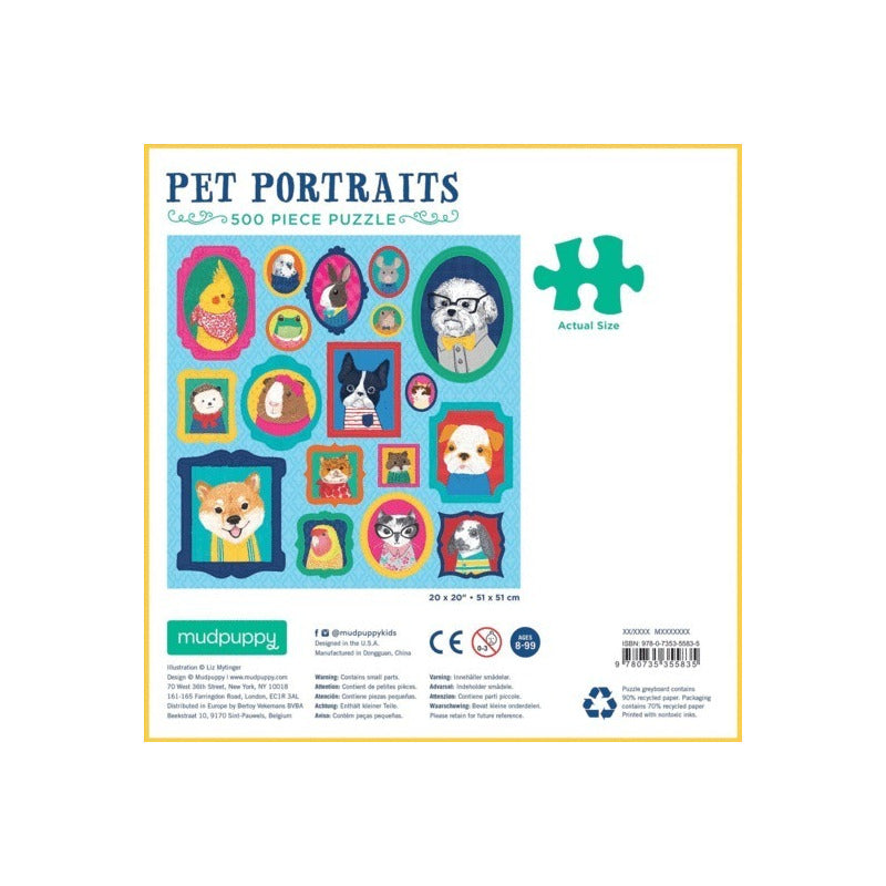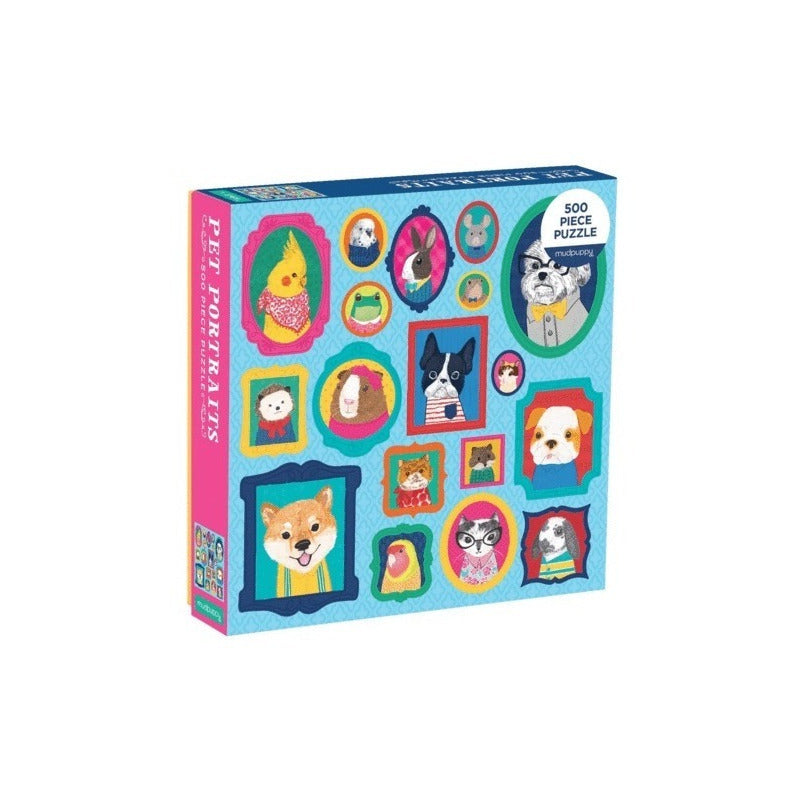 Reúne este rompecabezas de 500 piezas de Mudpuppy para revelar una variedad de animales en marcos, un diseño llamativo e icónico de Liz Mytinger.