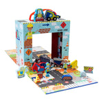 El juego incluye 15 piezas de madera de doble cara, elaboradas para proporcionar durabilidad y longevidad, lo que permite a los niños disfrutar de horas de juego imaginativo. (¡incluidos cuatro camiones y excavadoras que pueden moverse sobre ruedas!).