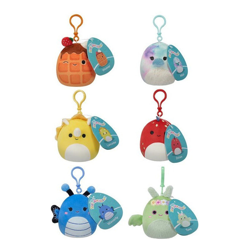 Cada mini Squishmallow viene con un práctico clip, perfecto para sujetarlo a mochilas o llaveros. (Se venden por separado).