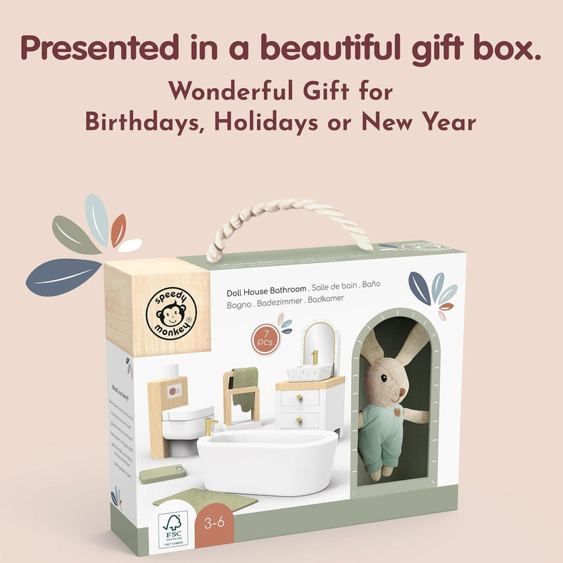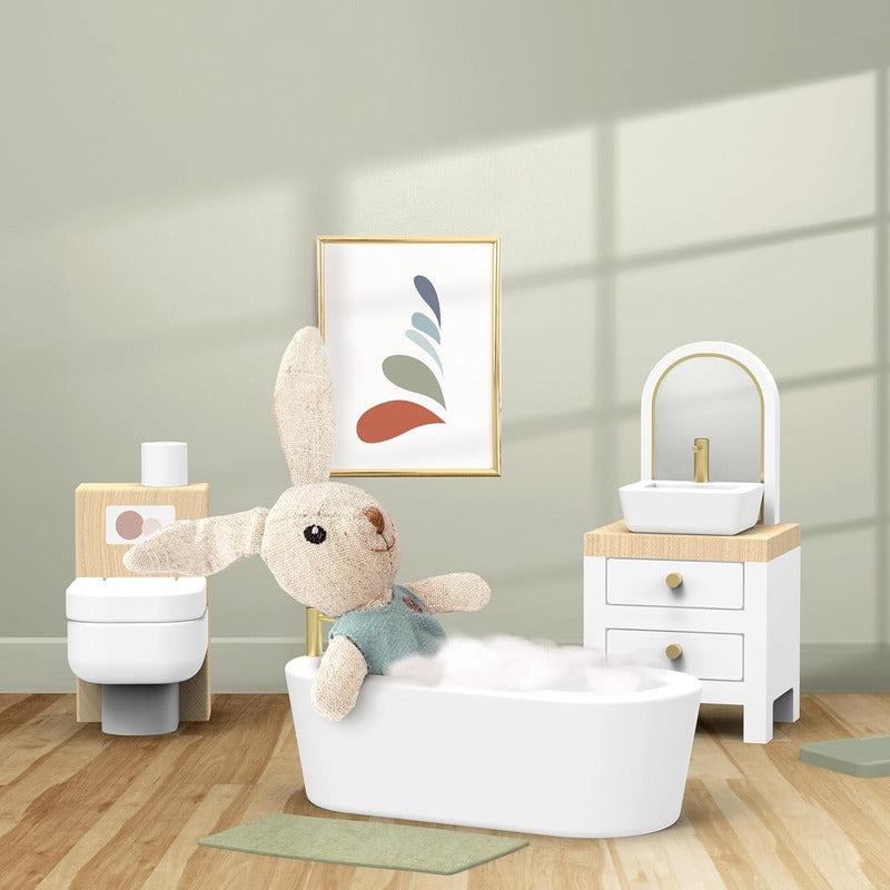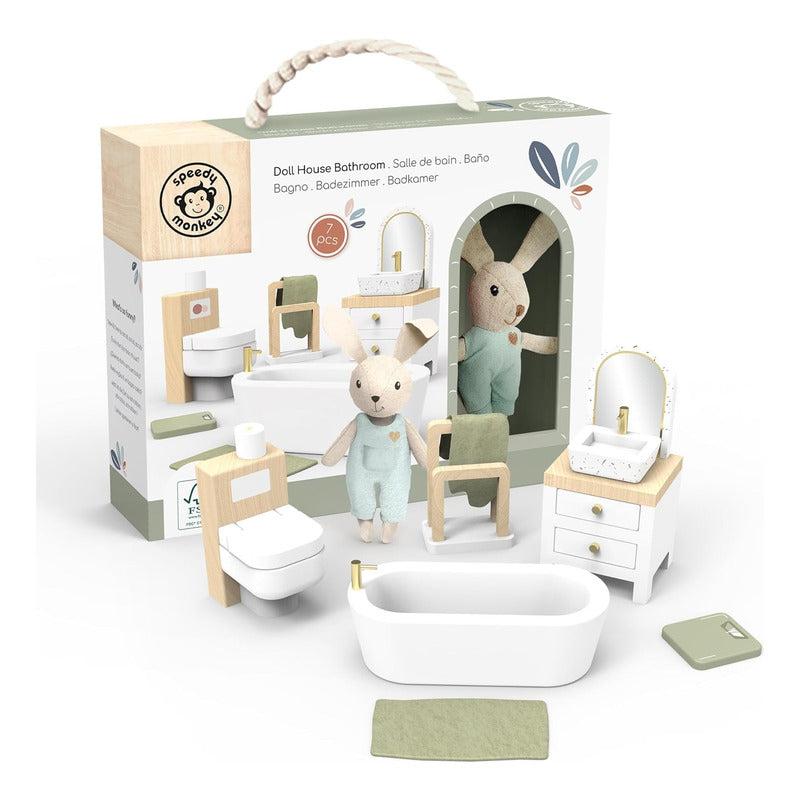 SPEEDY MONKEY. Juego De Baño Para Casa De Muñeca + 1 Conejito