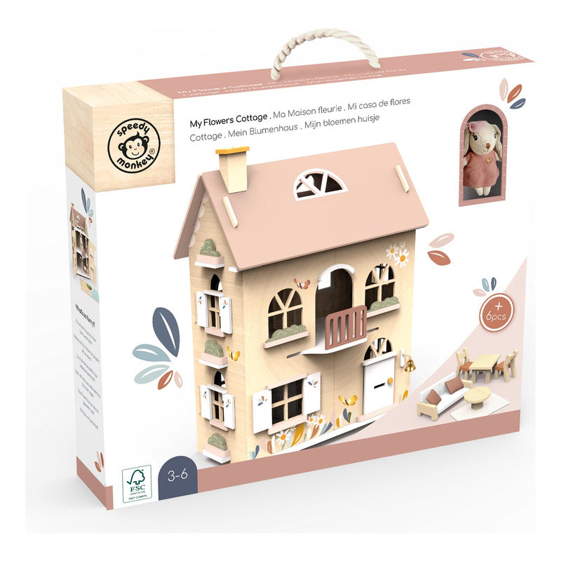 Speedy Monkey - Flowers Cottage: Set Inicio Casa Muñecas + 1 Conejito