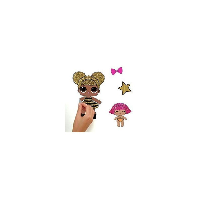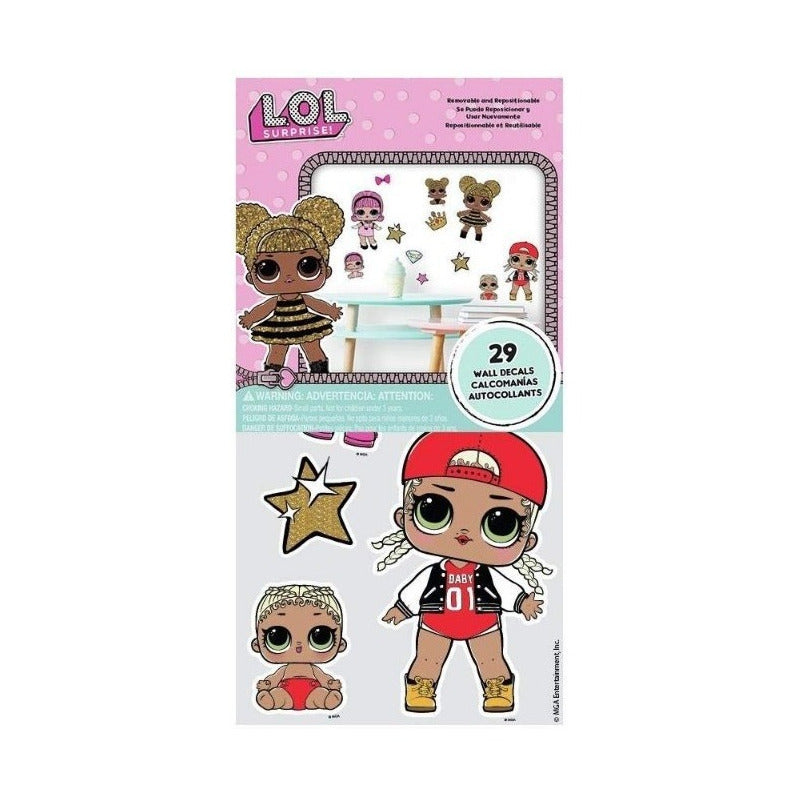 L.O.L. Surprise! Calcomanías de pared. Son autoadhesivas para una fácil colocación y se pueden despegar fácilmente. Con 29 calcomanías de estrellas y personajes para elegir, su hija se divertirá al decorar su habitación tal como les gusta.