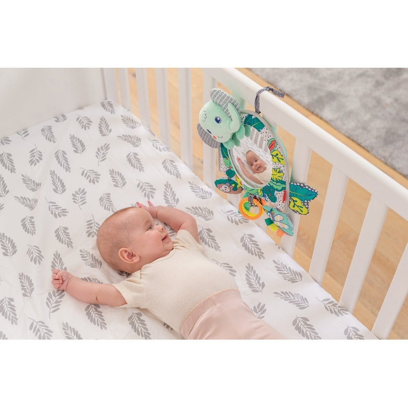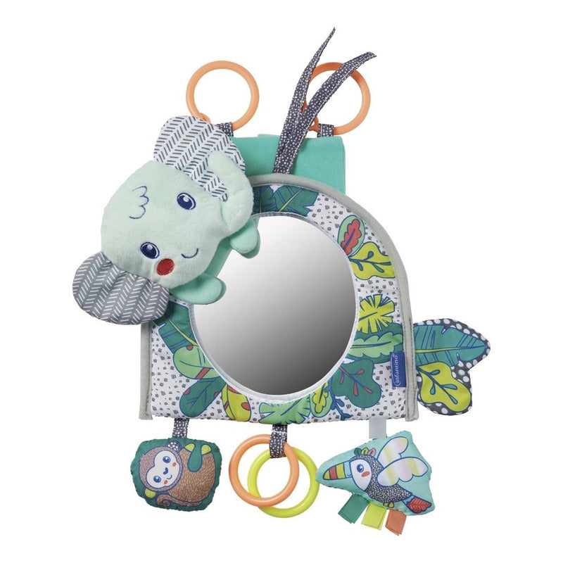 Espejo de actividades Infantino Discover & Play. Este espejo multifuncional invita al bebé a explorar el autodescubrimiento, la conciencia especial y las texturas táctiles.