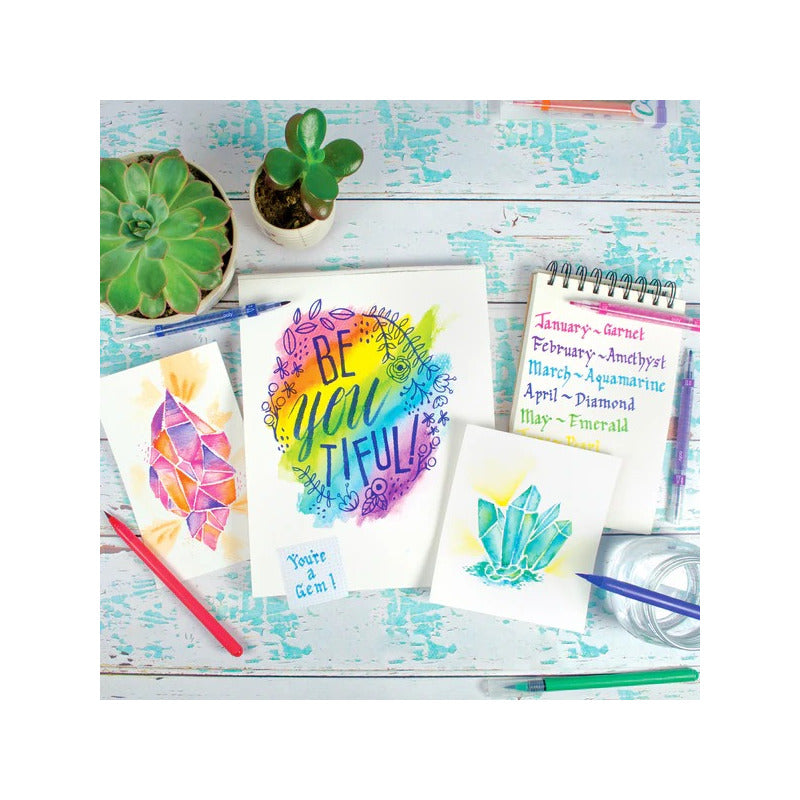 La acuarela nunca será la misma con los marcadores de acuarela Chroma Blends™. Este hermoso juego de 18 piezas presenta una colorida variedad de marcadores de acuarela con puntas de pincel. Simplemente agregue agua para obtener una acuarela increíble.
